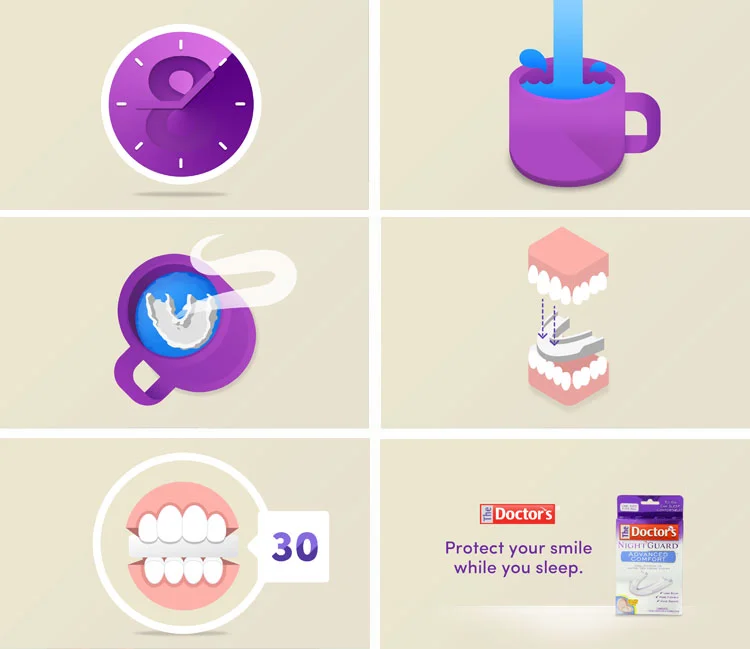 Wordy instruction manuals are often tossed aside. That’s why we created an easily digestible animated video to teach Doctor’s Nightguard users how to protect their smiles while they sleep. On this project, I was involved in initial concepting, sound editing, and every step in between.